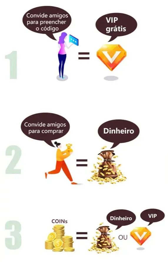 Além disso, você também pode ganhar recompensas convidando amigos. Após convidar um amigo com sucesso, você pode ganhar 3 dias adicionais de VIP grátis. Você também pode convidar mais amigos para ganhar até 360 dias de VIP e dinheiro grátis.